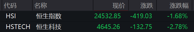 09:24 港股开盘丨恒指跌1.68%,科技股多数走低