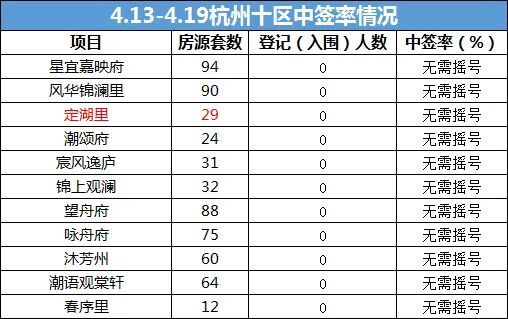 本周所有公示中签率的项目都无需摇号,开启了“线下先到先得”的选购模式。